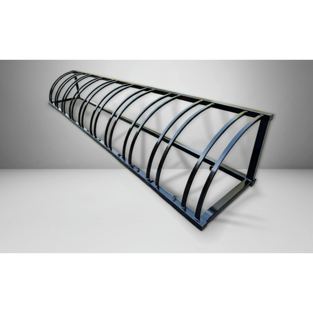 Велопарковка закруглённая на 10 мест, с длиной 290 см, шириной 45 см, высотой 45 см и весом 45 кг.