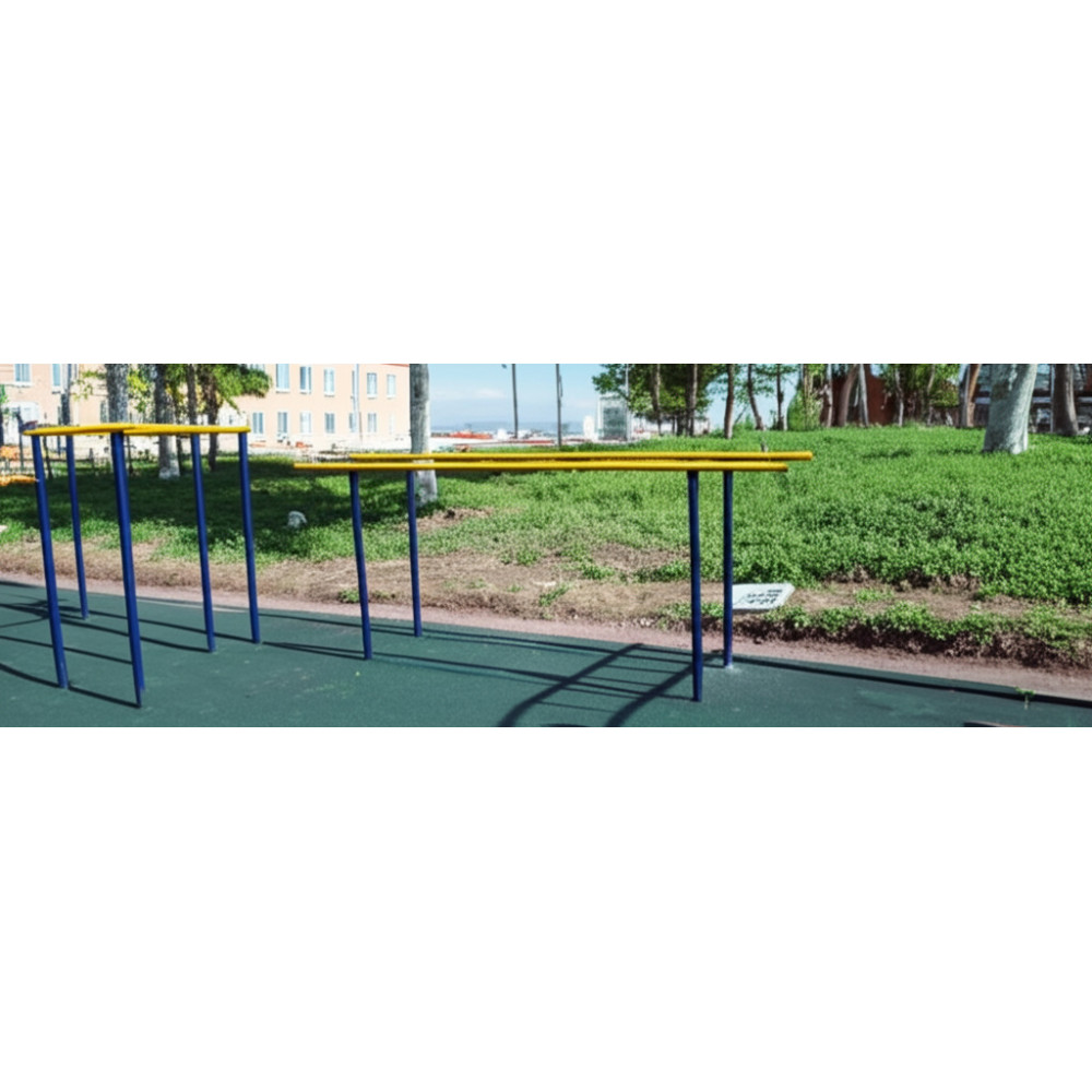 Параллельные брусья длиной 3,5 метра идеально подходят для установки на спортплощадках, в дворовых комплексах и учебных заведениях. Они бетонируются на глубину 50 см, обеспечивая устойчивость и надежность конструкции.
