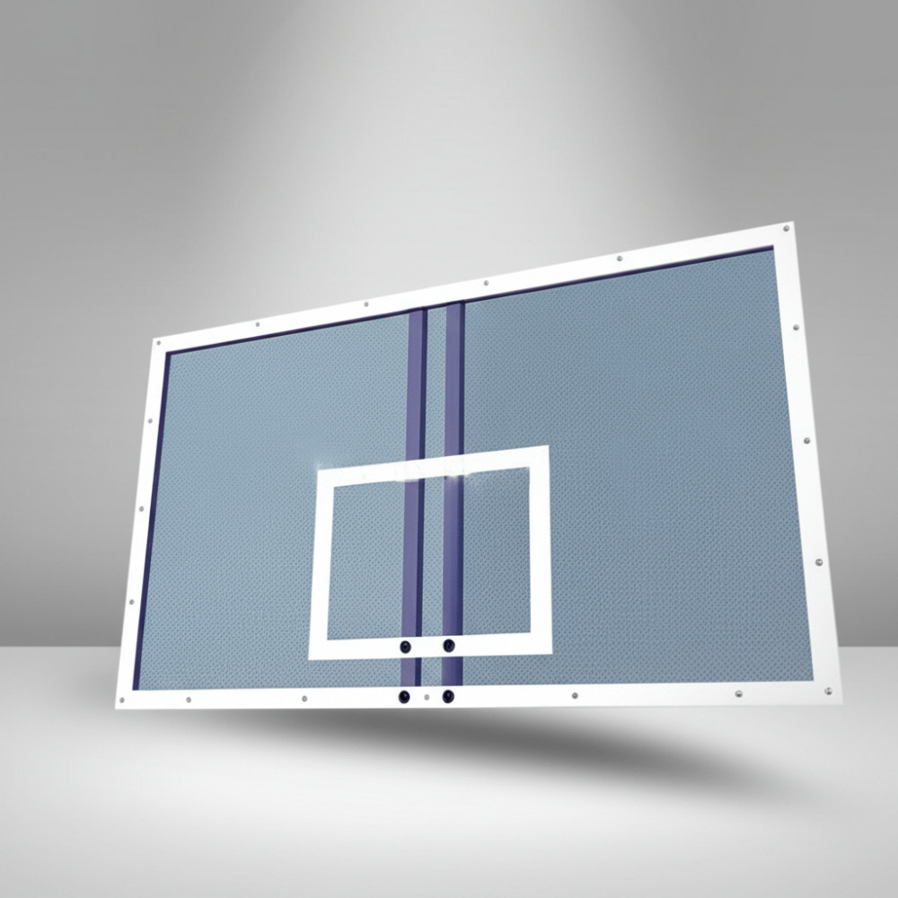 В производстве данного щита используется цельное противоударное акриловое оргстекло повышенной толщины 15 мм, рама изготовлена из металлического профиля 40х40мм и имеет монтажные отверстия и "клыки" для крепления к ферме или стойке а также отверстия для крепления баскетбольного кольца. Место под баскетбольное кольцо идет размерами 100Х110 мм. Размер щита 1800 x 1050 мм, что соответствует требованиям FIBA.