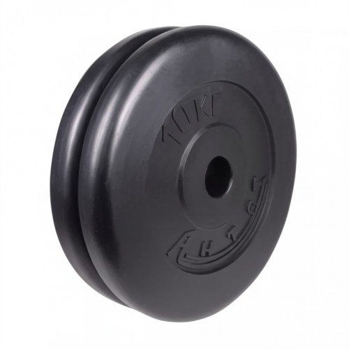 Обрезиненный диск Антат весом 10 кг с посадочным диаметром 26 мм идеально подходит для использования с соответствующими грифами.